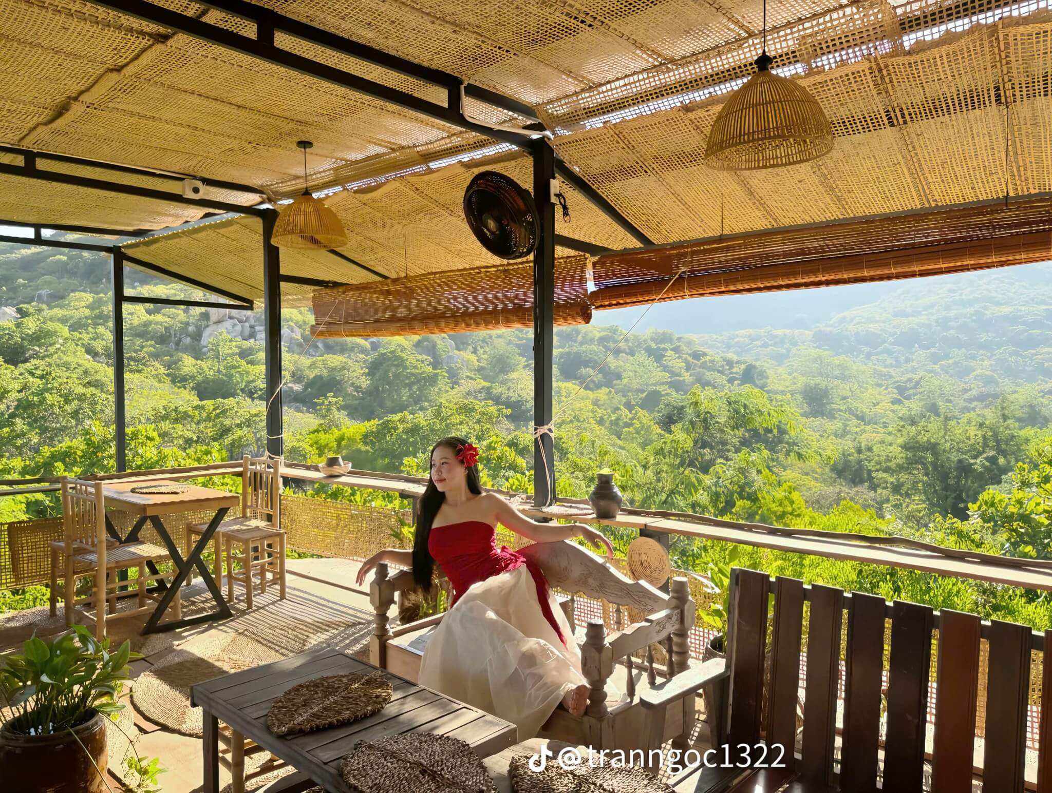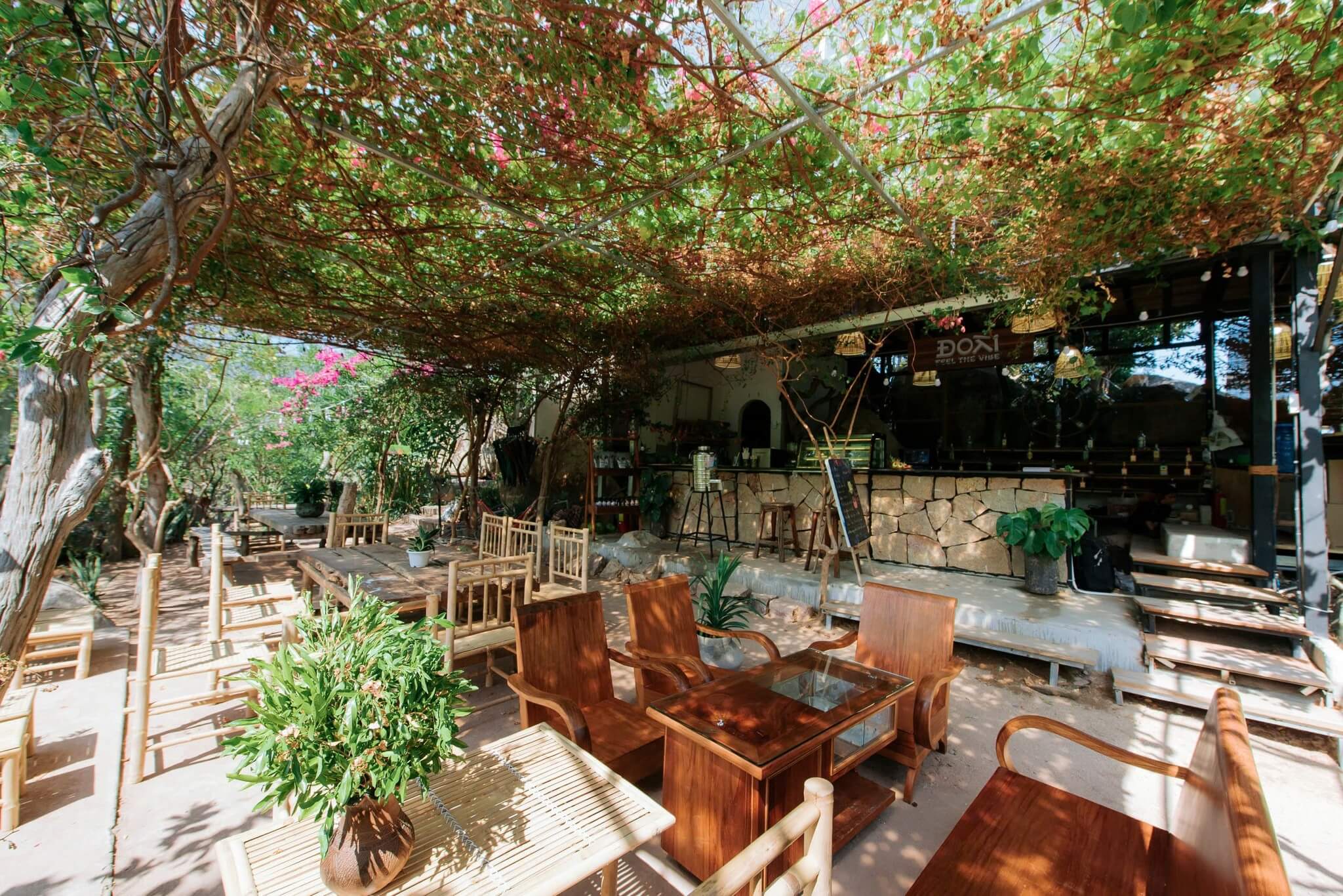 Nhiều du khách đặt chân lên Nhà hàng chay cafe Đoài việc cần làm là chọn ngay cho mình một chỗ ngồi có view ngắm toàn cảnh vịnh Vĩnh Hy. Tuy nhiên, vì sức chứa của quán có giới hạn mà lượng khách mỗi ngày đến trải nghiệm càng tăng nên xem đây như một điều may mắn. Và tất nhiên, điều may mắn này sẽ đem lại cho bạn những phút giây thư giãn tuyệt mà còn mang về nhiều bức hình check-in cực chill thu hút sự quan tâm của mọi người trên mạng xã hội.